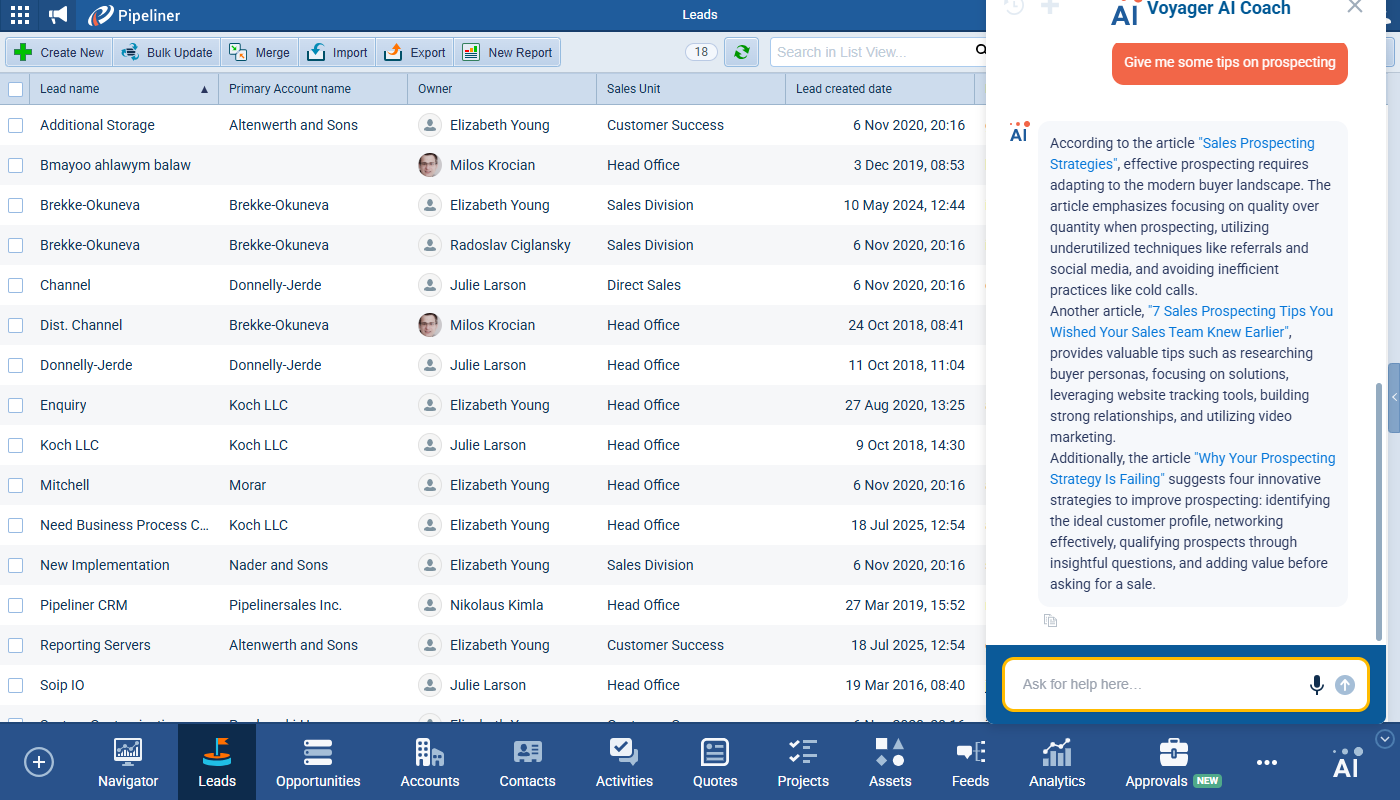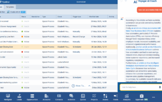 The new Voyager AI Coach guides userUser User means a person who uses or consumes a product or a service, usually a digital device or an online service. requests with intelligently routed, always-available access, and seamless integration with the incredible depth of knowledge available from both our SalesPOP! Experts and Coevera Knowledge Base.