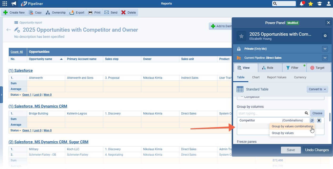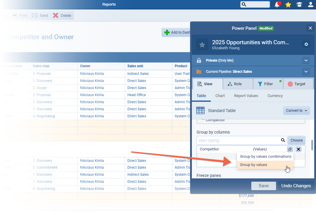 Like in Charts, the user can change the grouping mode from "Combination" (our default grouping behavior) to "Values" (standard table only).