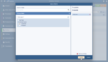 Admins can choose whether a tag is available for “All Types” of form for the entity or “Selected Types“.