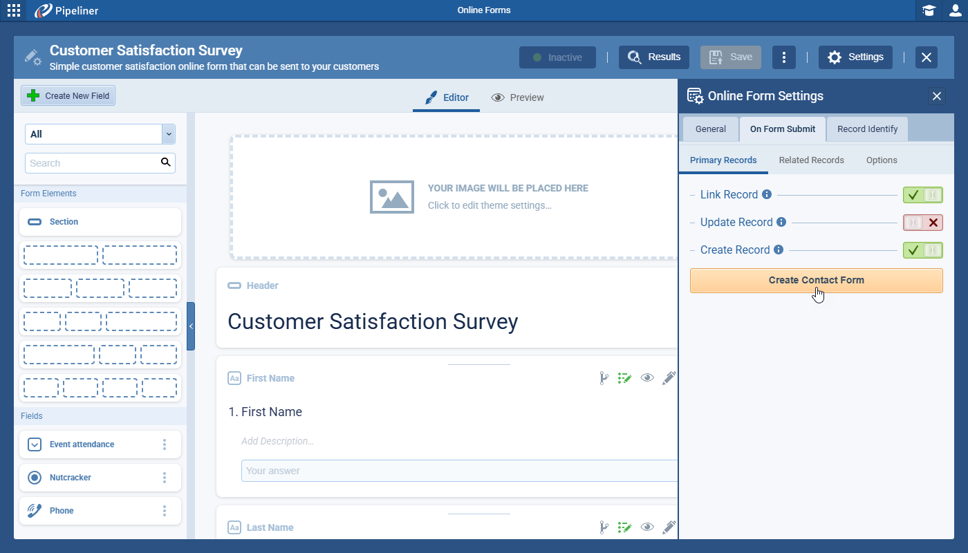 A common example of how helpful this will be is to consider an “Online Form” designed as a “Contact Us” form embedded on your website. You will now be able to create a LeadLead Lead refers to a prospect or potential customer (who can be an individual or organization) that exhibits interest in your service or product; or any additional information about such entity., a related primary Contact and a related primary AccountAccount Account refers to a record of primary and background information about an individual or corporate customer, including contact data, preferred services, and transactions with your company. from a single form submission!