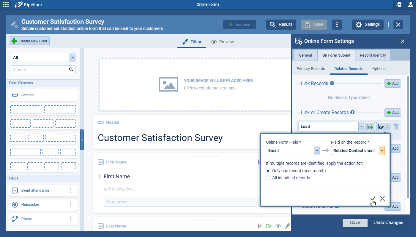 Online Forms Update: New Features for Managing Related Records. The latest Online Forms update introduces exciting new features and improvements to streamline your workflow and enhance dataData Data is a set of quantitative and qualitative facts that can be used as reference or inputs for computations, analyses, descriptions, predictions, reasoning and planning. management. Previously, the responses from an “Online Form” could create, or link to, a single entity. This brilliant enhancement now allows you to link to/create a primary record and link to or create one or more related records at the same time.