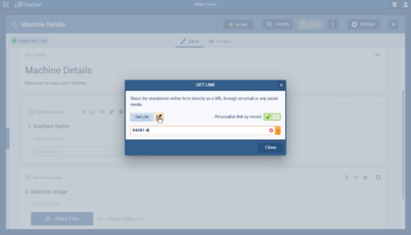 Online Form links can be personalised to link it to a specific “Custom Entity” or “Quote” record.