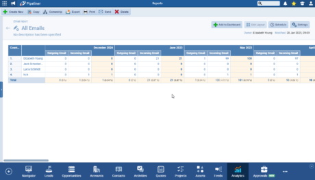 We are adding the ability to create spreadsheet and pivot table reports based on a newly accessible “Email” entity. Previously it was necessary to report on emails linked to “Contacts” (or “Accounts”) but now you can start a report based on Emails regardless of where they are linked. This now gives you the option to produce reports to analyse how many emails sent to or received by each user.