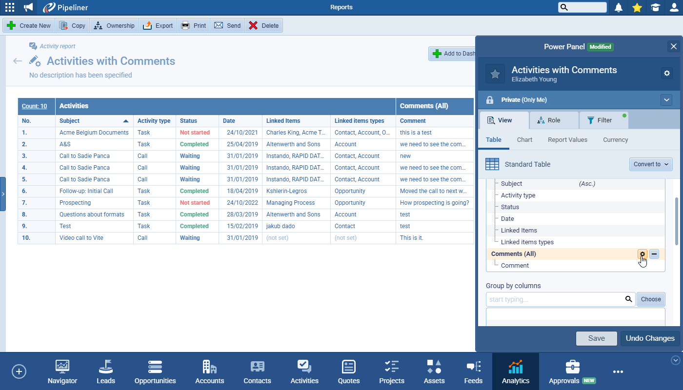 We have added "Comments" to "Activity Reports", so now the user can see the last comment or all comments in the report table (standard table).