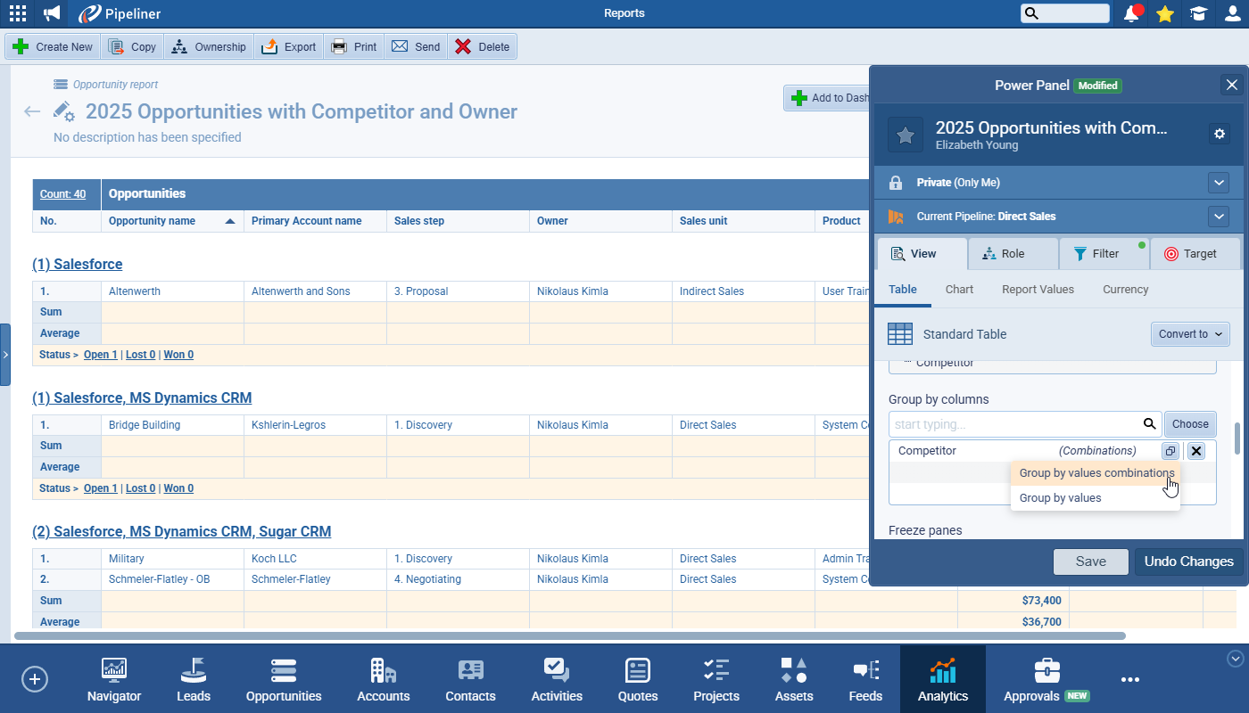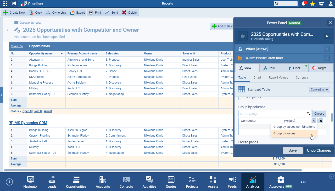 Like in Charts, the user can change the grouping mode from "Combination" (our default grouping behavior) to "Values" (standard table only).