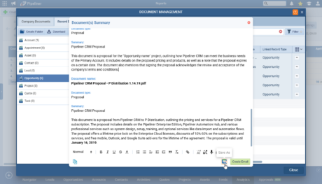 - The provided summary or summaries can be saved as a PDF, Task, Appointment, Note, or sent as an email.