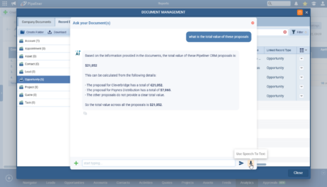 This release brings the power of AI to documents stored in Coevera. Users can now summarise the contentContent Content refers to a material or document released in various forms (such as text, image, audio, and video) and created to inform, engage or influence specific audiences. of selected documents or, for example, ask the Document AI to sum the total of several selected invoices.