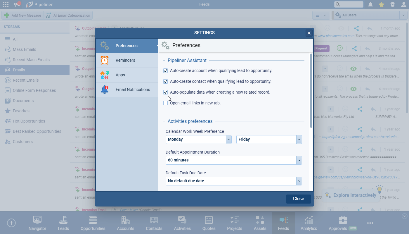 In User Settings, the setting “Auto-populate dataData Data is a set of quantitative and qualitative facts that can be used as reference or inputs for computations, analyses, descriptions, predictions, reasoning and planning. when creating a new AccountAccount Account refers to a record of primary and background information about an individual or corporate customer, including contact data, preferred services, and transactions with your company. or Contact” has been changed to “Auto-populate data when creating a new related record”. When enabled, this switch will now affect all prefills.