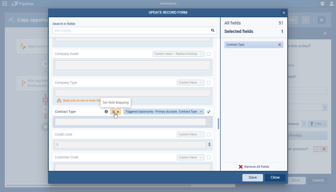 - create new fields with titles, descriptions, and values including new fields that are related to fields in Coevera Entities (existing radio groups or multi-select fields, for example) for better mapping