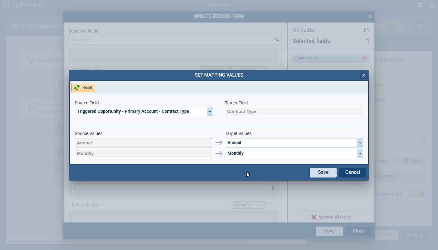 Values from any dropdown, radio or multi select checkbox can be mapped to the same types of fields or compatible fields from the same or any other entity as part of a process.