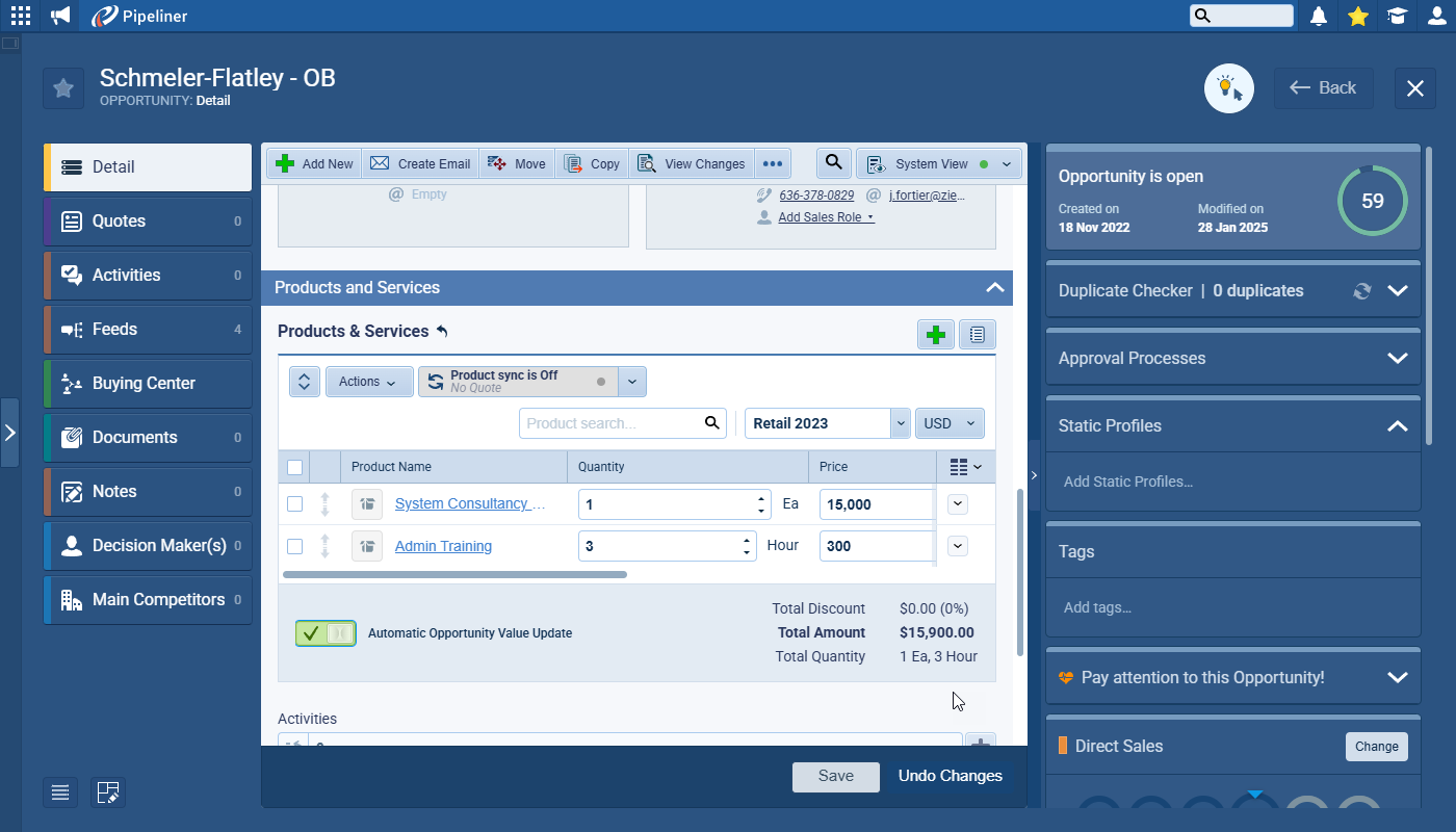 Based on customer feedback, we’ve added a “Total Quantity” summary to the “Products & Services” table for better visibility when managing Opportunities.