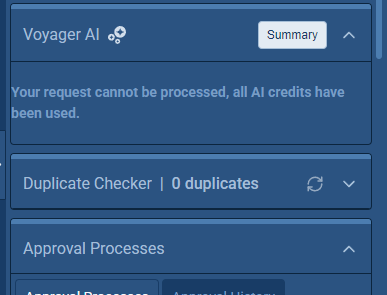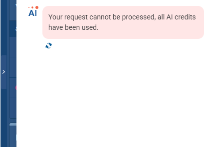 - When all AI credits are exhausted, users see a clear message: Your request cannot be processed, all AI credits have been used.