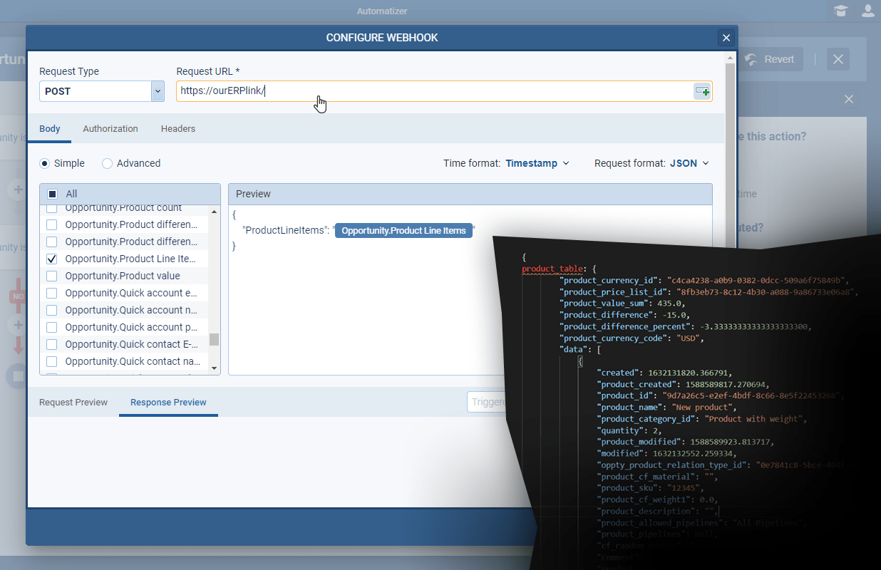 When the trigger in an Automatizer process is an Opportunity, you now have an option to send the whole Product table to your external system through a webhook. For example, when an Opportunity is Won, send all Products linked to the Opportunity to your ERP system ⤵
