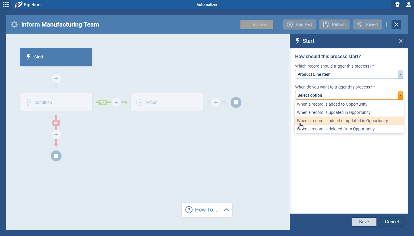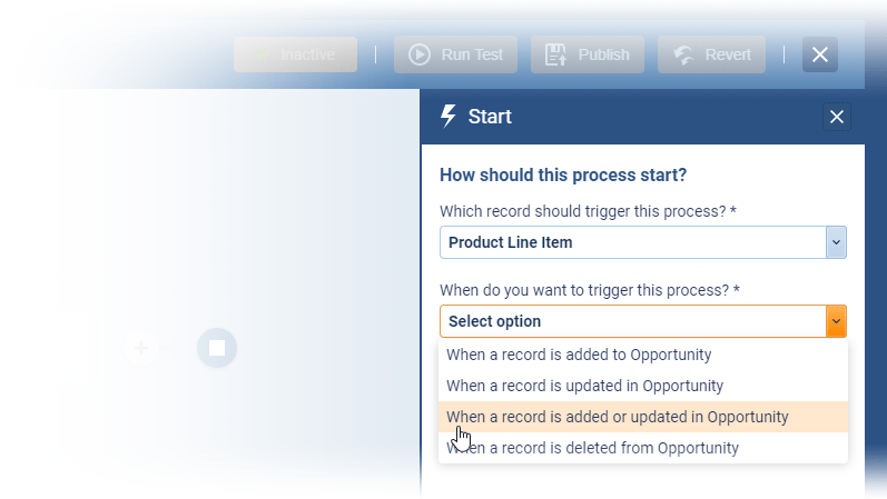 In Automatizer there is a new option to trigger a Process from a Product Line Item. So when a product is added to or update on (or deleted from) an Opportunity, your process could create a task or send an email etc ⤵