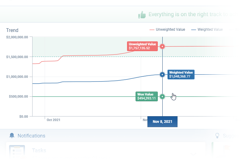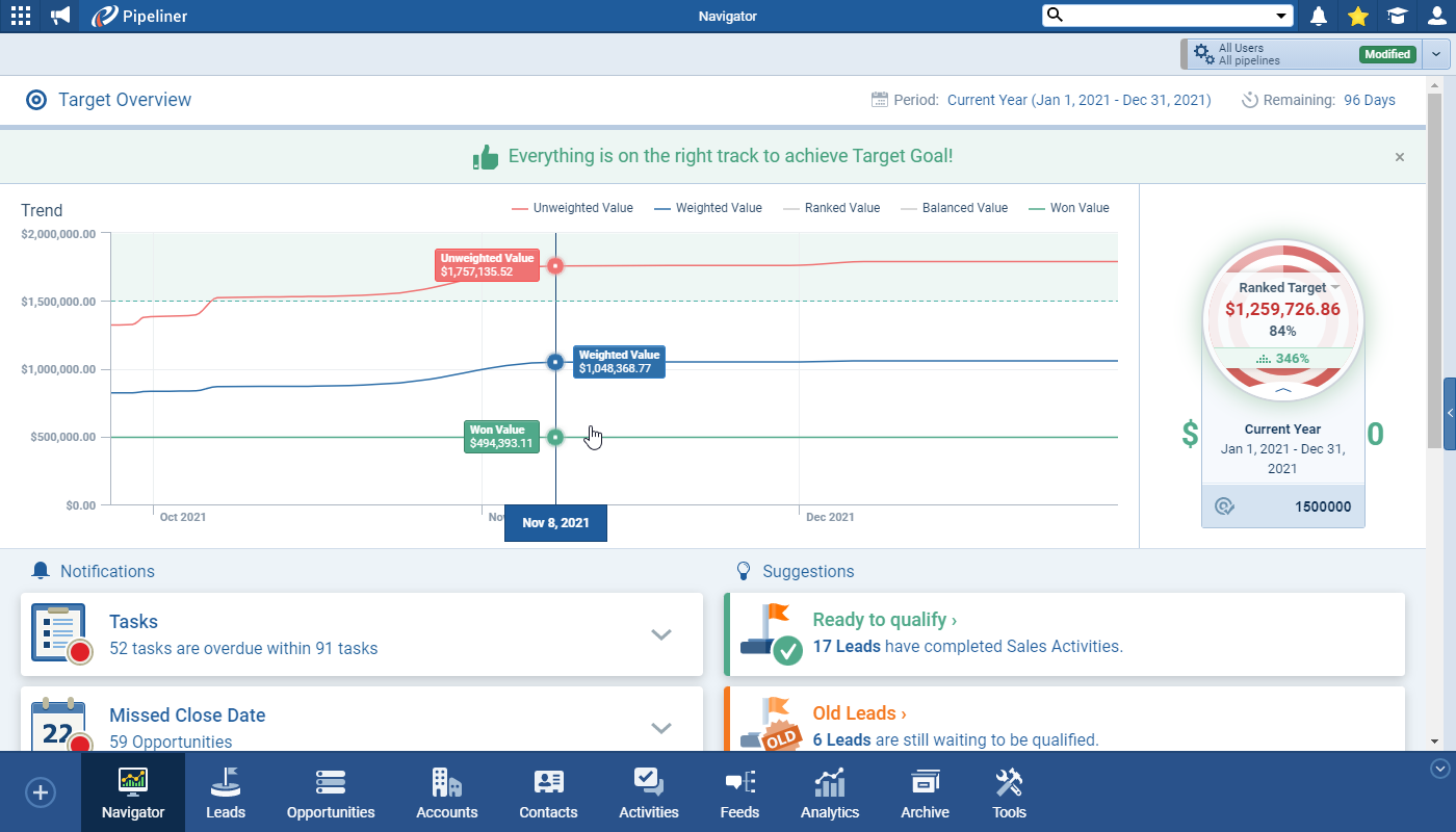 The Navigator target graph now includes a line for Unweighted and for Won values making it easier to track performance against your Target Goal ⤵