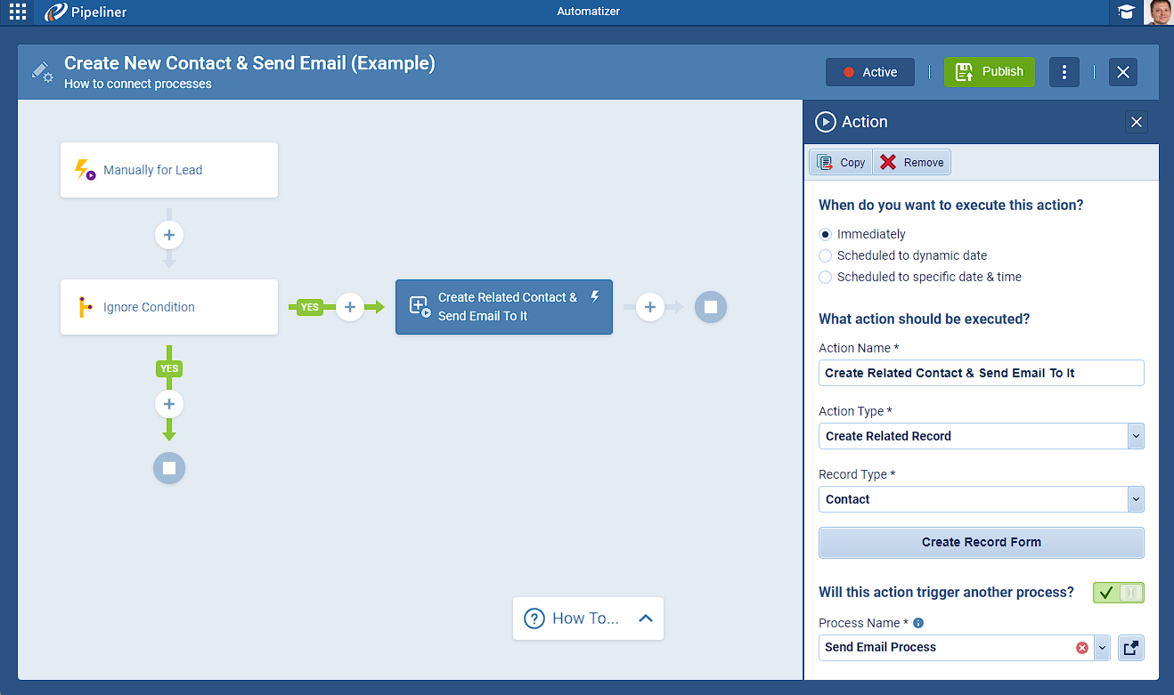 Automatizer processes can optionally trigger another process to run if an Action step is set to one of the following: