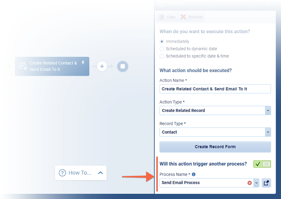NOTE: Users will be alerted in the event that they select a secondary process that might create an infinite loop, such as if Process #1 triggersTriggers Triggers are a set of signals or occurrences that meet certain criteria to be considered an opportunity to make a sale. Process #2, which in turn re-triggers Process #1.