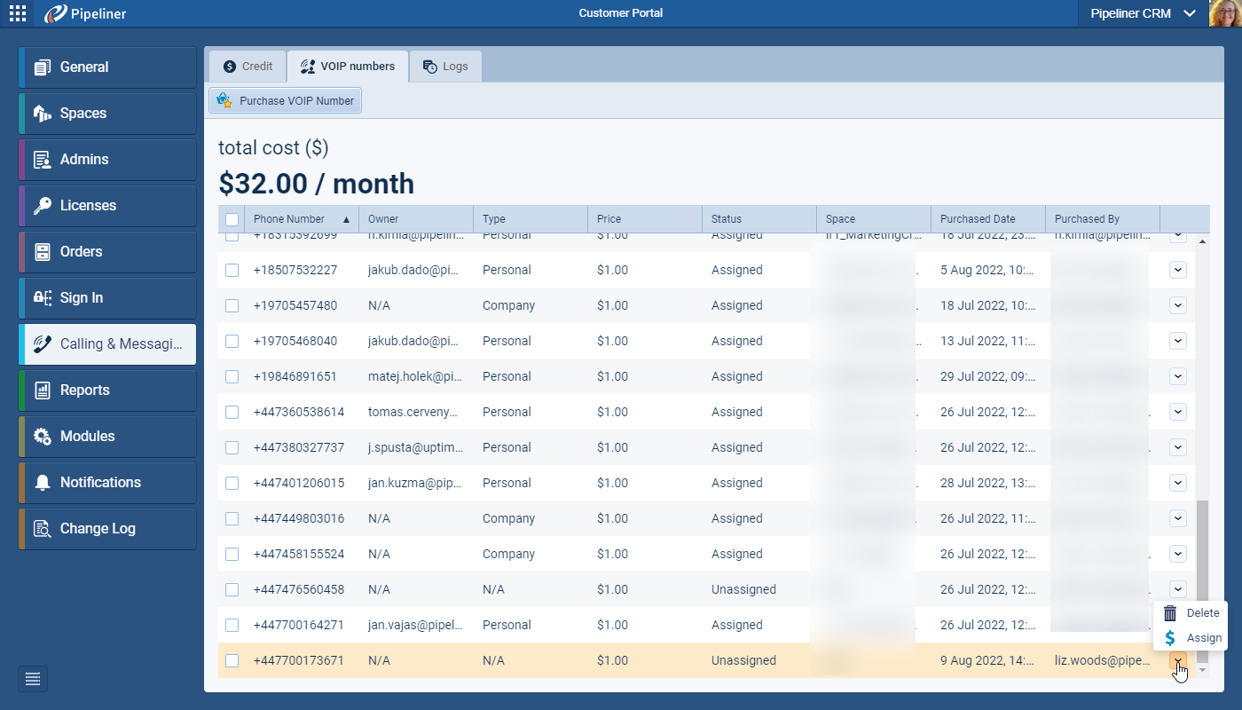 The feature is requested by your Coevera Admins from the “Admin Module › Automation Hub“. Your Subscription Admins will manage the purchase of Call Credits and adding/deleting VOIP numbers from your subscription in customer-portal.pipelinersales.com.