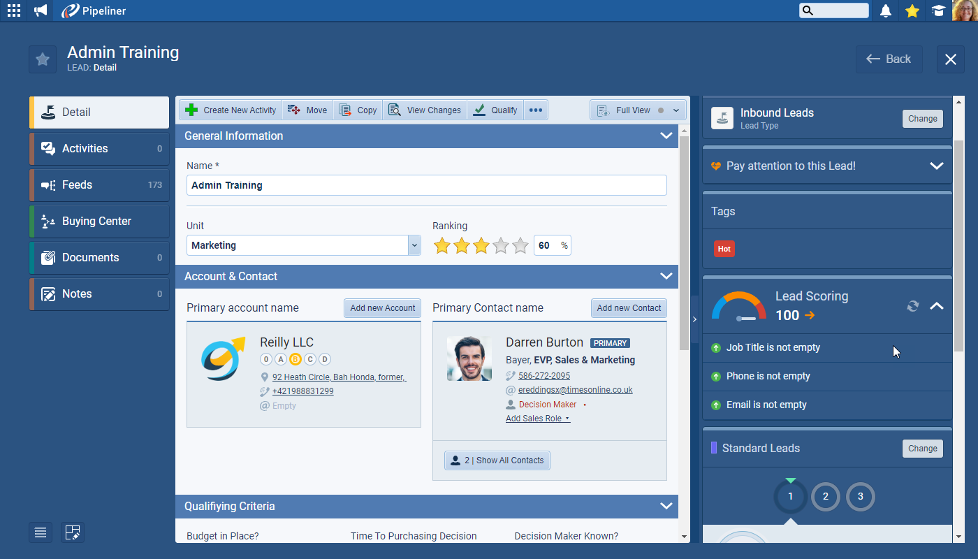 The “Lead Scoring” add-on allows you to use both pre-defined and custom scoring criteria so that Business Development users can prioritise the best Leads to work on. Coevera Admins can set up “Scoring Rules” based on field values, activities or emails for different types of LeadLead Lead refers to a prospect or potential customer (who can be an individual or organization) that exhibits interest in your service or product; or any additional information about such entity.. The Lead Scoring widget shows both the overall score for each Lead and also how it is tracking against your Lead Scoring rules. ⤵