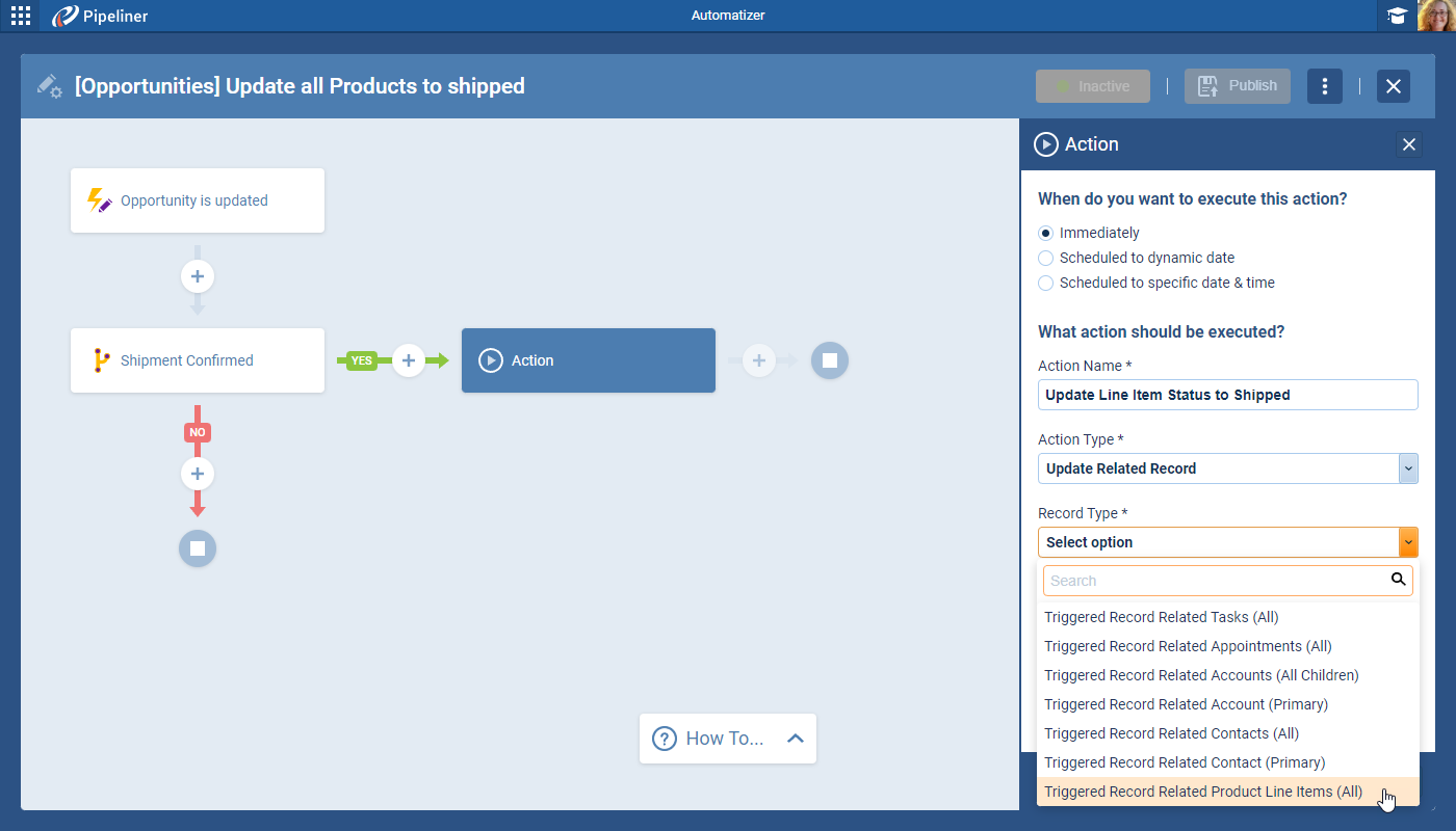 For Automatizer processes triggered by Opportunities, there is now a new action to update all Related Product Line Items. ⤵