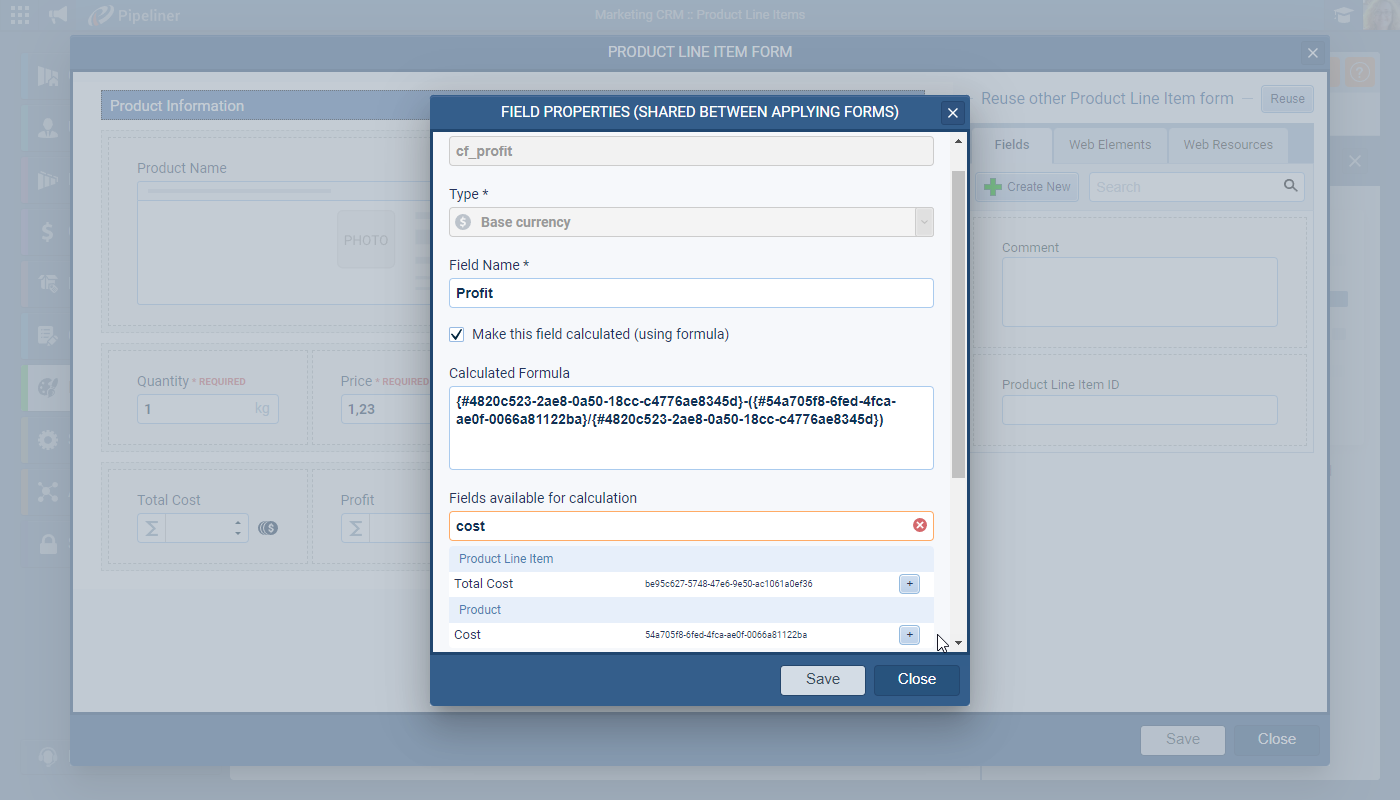 It’s now possible to enable a calculation formula on the system Amount field (so it no longer is fixed as Price x Quantity) and we’ve extended that idea to custom Product Line Item fields too. A great use case here is a Product Line Item custom field “Margin” which you would calculate as the difference between the Cost (which would live at the Product level) and Amount (which lives on the Line Item)!