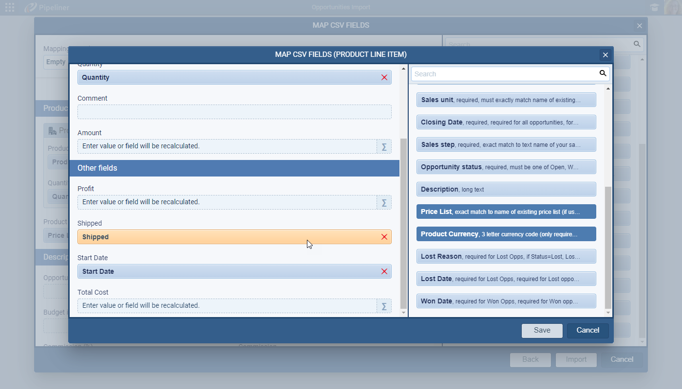 We’ve extended the import feature when you’re importing Opportunities with associated Product and Product Line Item dataData Data is a set of quantitative and qualitative facts that can be used as reference or inputs for computations, analyses, descriptions, predictions, reasoning and planning. so that you can now also map to custom product line item fields rather than just Quantity and Price. ⤵