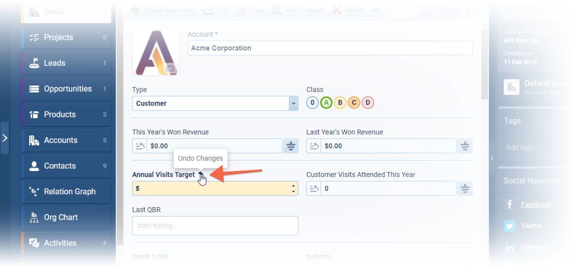 When you make an update to a field on the Detail tab of an existing record, the changed field is highlighted in yellow and we’ve added a useful “revert” option so users can undo the last change that was made to that field. Make sure you hit revert to undo your changes before saving! ⤵