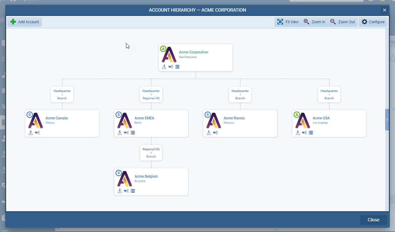 Clicking on the “View Account Hierarchy” button opens up the organizational chart view in a separate window ⤵
