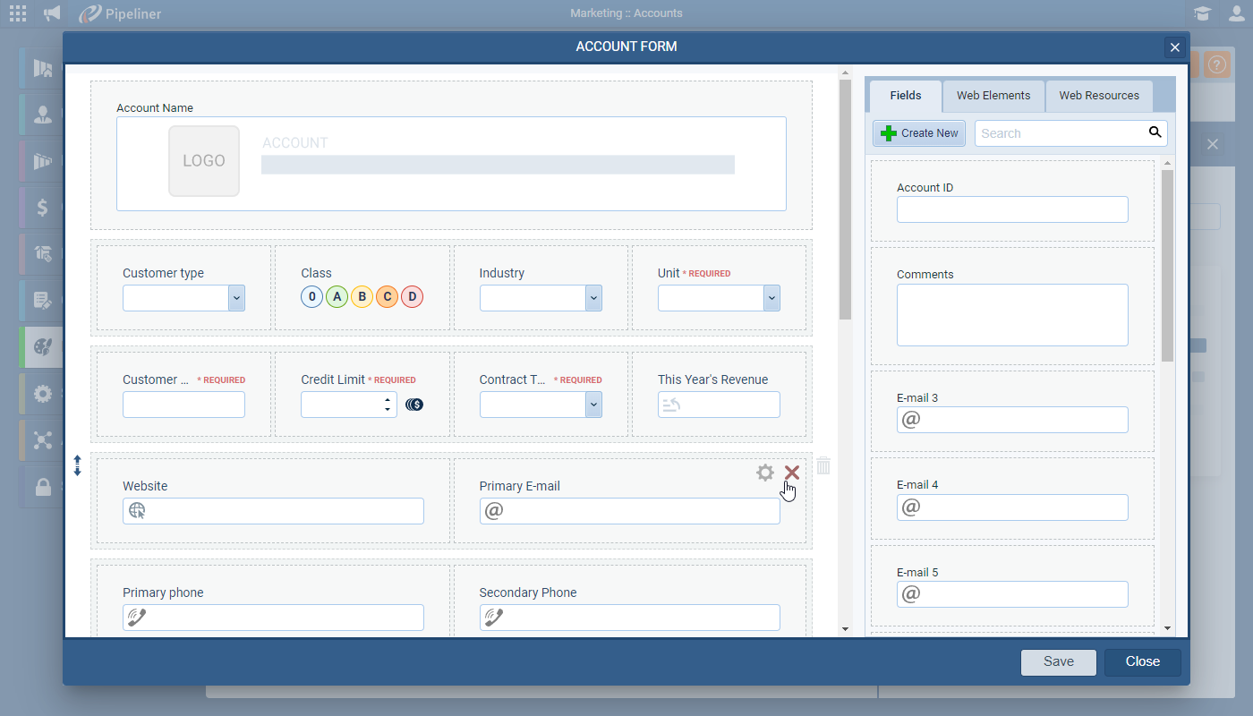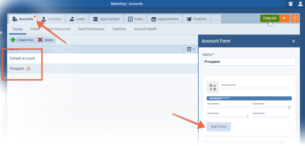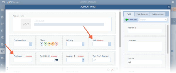 Different fields can be added to each Form, making certain fields “required” only for certain Types of “Account/Contact” ⤵