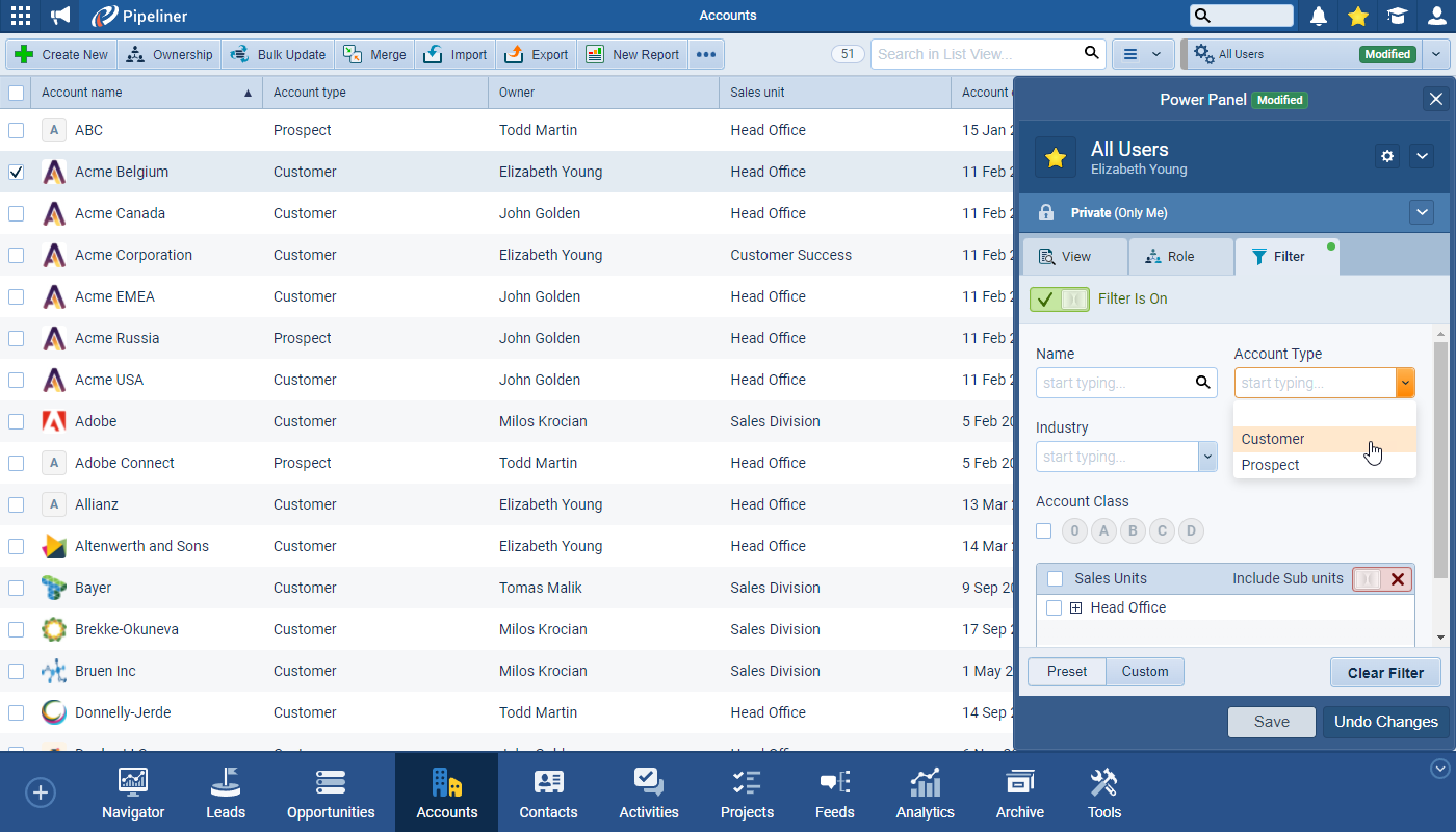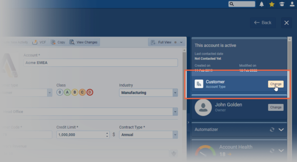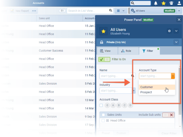 The system “Account Type” field can also be added to List Views, Reports and Filters ⤵