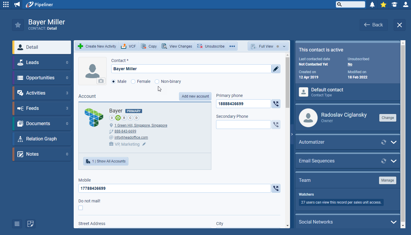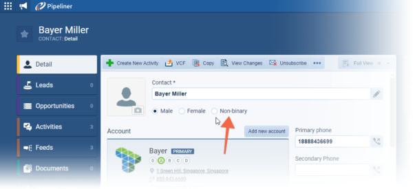 For customers using the Gender field, we’ve added a new gender option for contacts “Non-Binary” ⤵