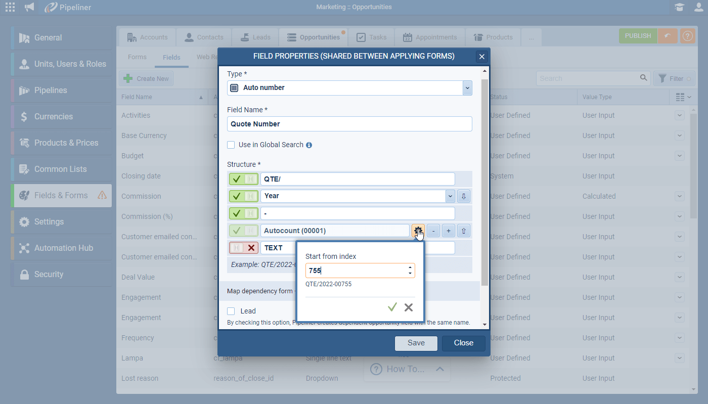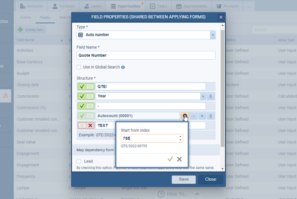 It’s now possible to specify the starting number for a new Autonumber field in Coevera. This is really useful if you’ve already been using a number in another system and want to continue from the next value when you start using Coevera ⤵