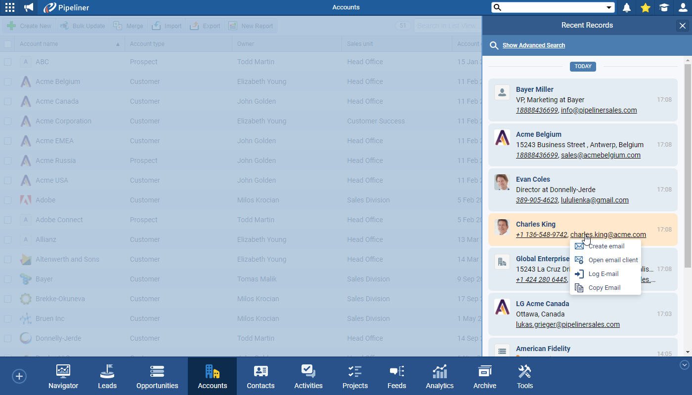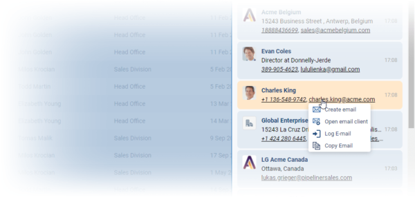 Accounts now display their Location and Contacts their Job Title. Additionally, we’ve made the phone numbers and email addresses interactive so you can call or email directly from the search results ⤵