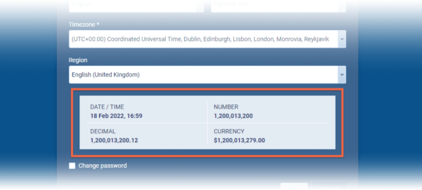 All numeric values (currencies, multi currencies, floats, number) in the Web App are now formatted in line with the user’s regional settings ⤵