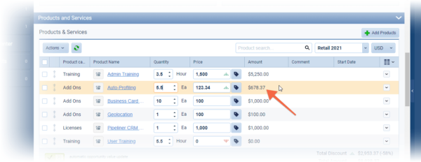 Users can now update the Quantity field to include decimal places e.g. 1.5 Hours, 3.5kg. The Product Amount is also automatically rounded to 2 decimal places ⤵