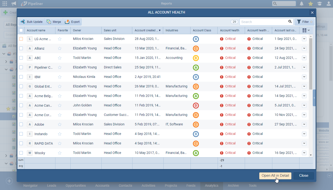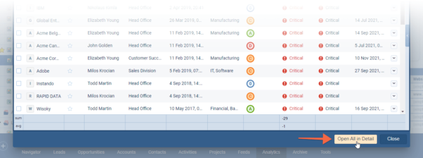 When using the drilldown into data from a report chart, for example, there’s a new option to “Open All in Detail” to allow easy scrolling from record to record after making the required updates or actions ⤵