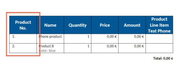 When setting up your template and including the Product Table, you can now include a field “Product No.” that will add an item number to each Product based on the order in which they have been added to Opportunities ⤵