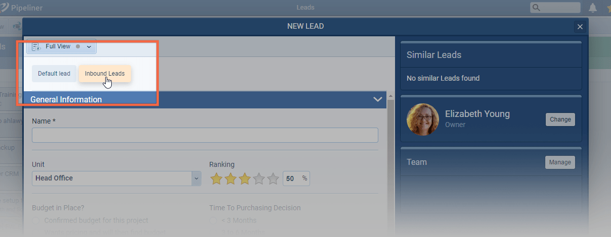 If a Process has multiple Forms linked to it, users will be able to select which form to use when creating a Lead within that Process ⤵