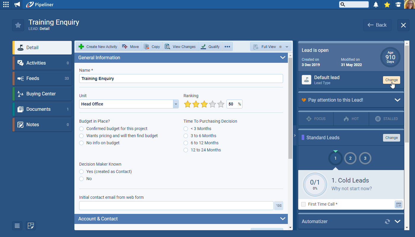 Forms can also be changed for existing “Leads” ⤵