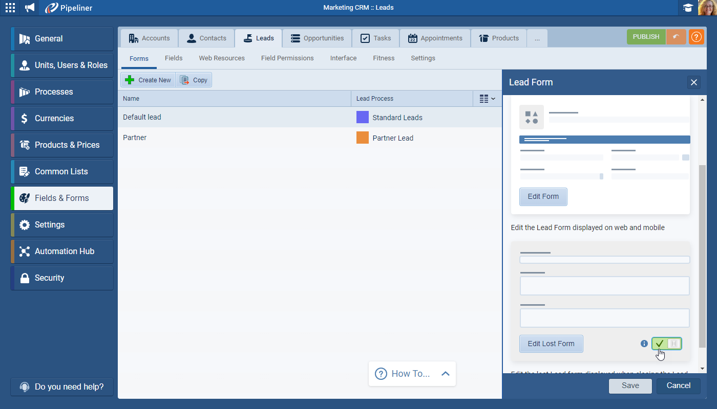 A matching Lost Lead form can be enabled (or disabled) for each form type that is created ⤵