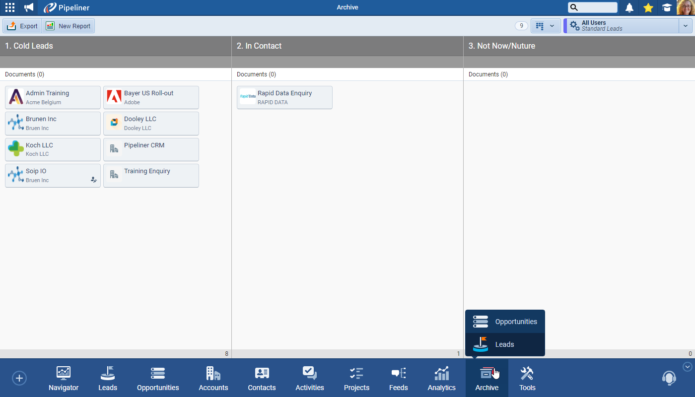 We’ve also separated the Archive into to facilitate tracking of “Lost Leads” in their own area ⤵