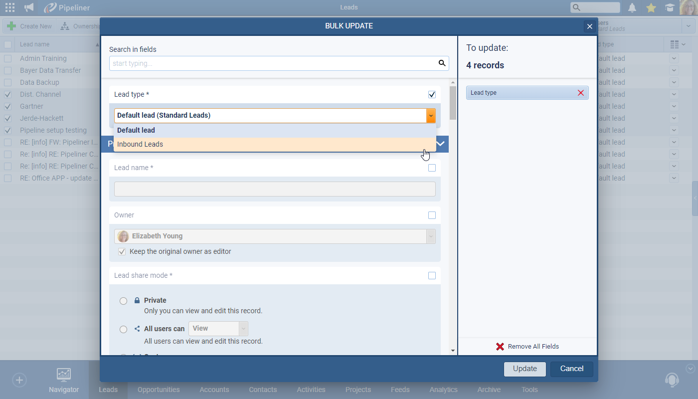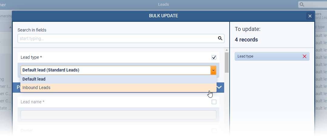 Leads can be bulk updated from one “Form Type” to another ⤵