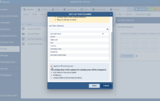 and, by ticking “Apply to existing users”, in some specific cases, override the existing list view columns for every user in the application