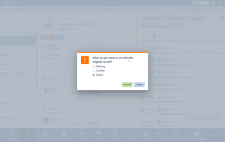 During creation of the new record, data from the existing record is prefilled into the new record creation form. After the new record is created, the existing record is deleted, archived or not changed at all (depending on the option chosen).