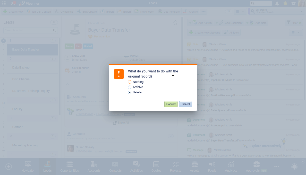 In the web app, there will be a new option to Convert in Preview screens (only if one or more records are selected), Drilldown dialogs (if one or more records are selected) or within the Record detail