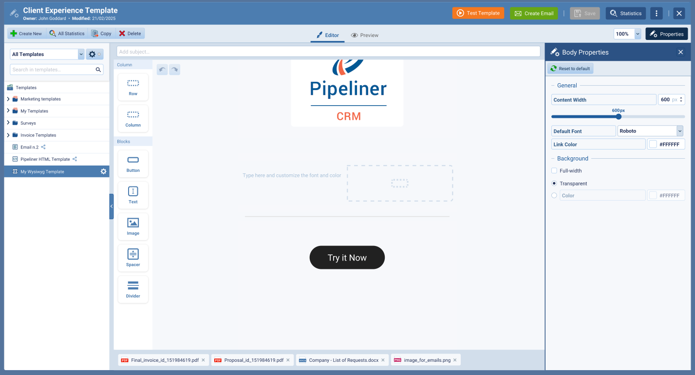 Add attachments to your template using the paperclip icon at the bottom of your template.