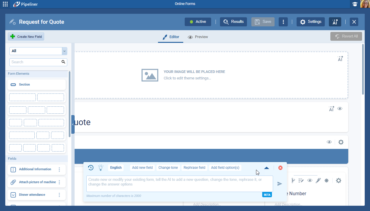 - When the userUser User means a person who uses or consumes a product or a service, usually a digital device or an online service. creates a new form, the AI agent will generate an image based on the prompt automatically