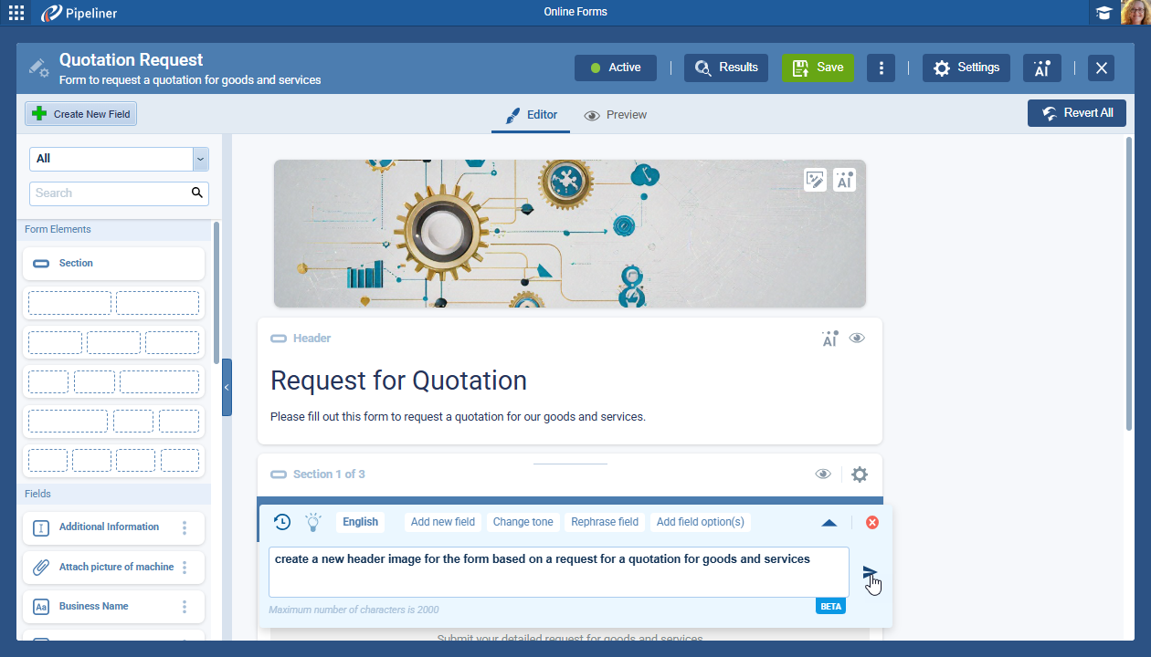 The AI agent can now create a more structured form using more fields in a single row to create more comprehensive and structured forms.