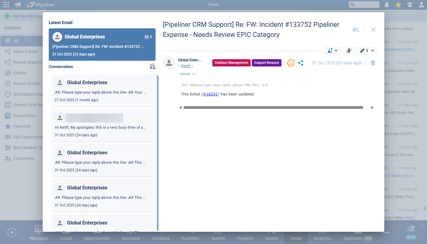 - This item acts as a reference. When clicked, it always displays the detail of the most recent email in the thread.