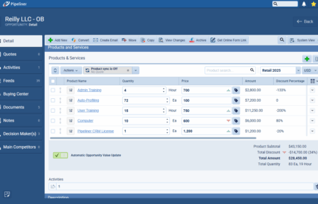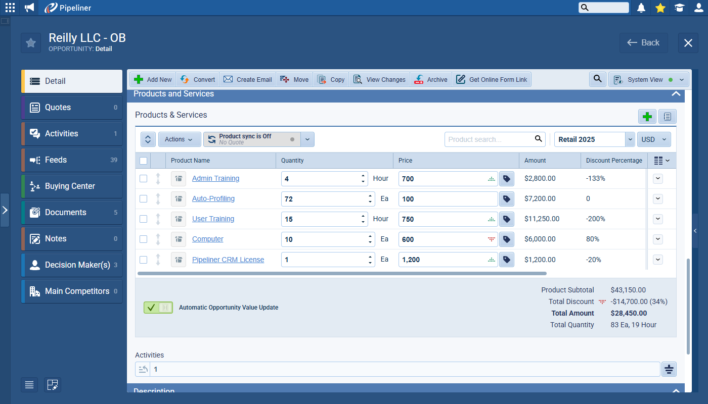 In List Views: “Product Subtotal,” “Product Total Discount,” and “Product Total Amount” behave as multi-currency fields, respecting the user’s currency settings.